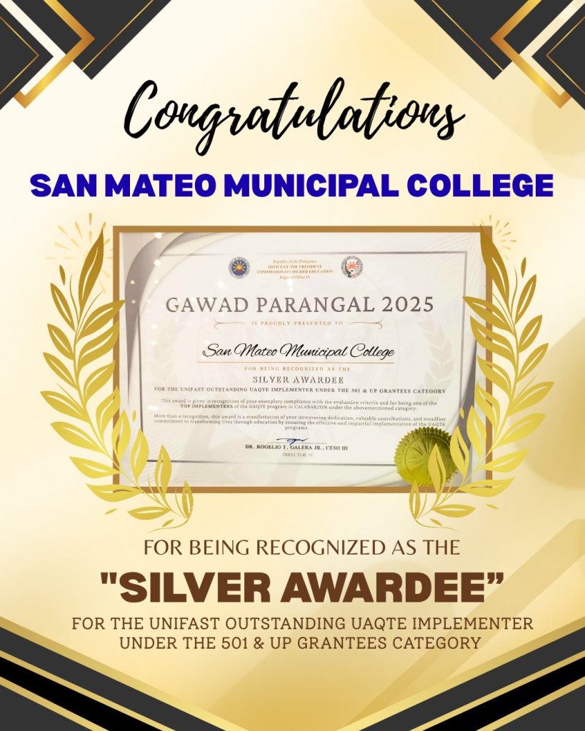 San Mateo Municipal College is a local college committed to launch a world wide image, as part of its marketing plan to attract quality students with high spirit and thrust towards transformation to modernization, innovative, and in the pursuit of educational excellence.
